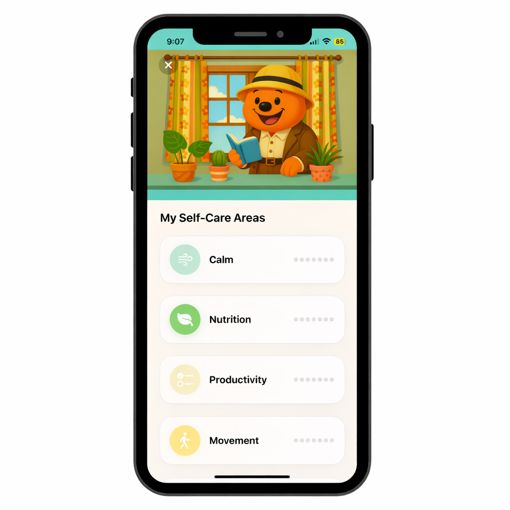 - Build gentle daily habits and self-care routines